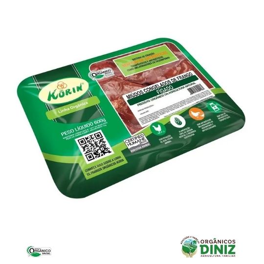 São alimentados com uma ração especial, feita pela própria Korin, a partir de grãos orgânicos certificados, sem nenhum ingrediente de origem animal. Também não são adicionados antibióticos a esta alimentação. Os Frangos Orgânicos Korin nunca consomem antibióticos, seja como promotor de tratamento, seja como terapêutico.