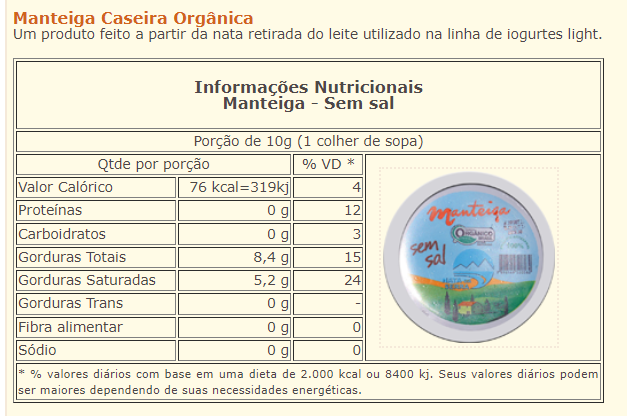 Manteiga S/ Sal Orgânica Nata da Serra